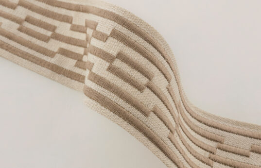 Our Maze design in beige offers a fresh take on a traditional geometric design. The contemporary neutral colourway works well with all of our Plush velvets.